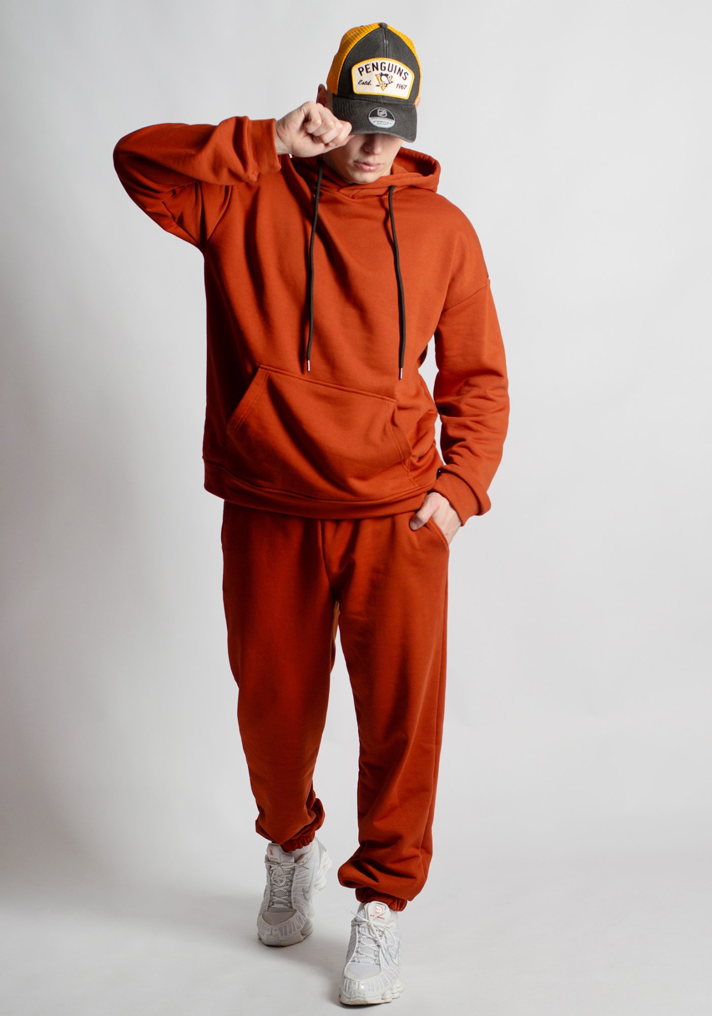 Мужской спортивный костюм выполнен из футера 3-ух нитки без начеса. В комплекте: худи и джоггеры из мягкого хлопка.На поясе брюк удобная и широкая резинка под шнуровку, что позволяет дополнительно регулировать изделие по объему, два боковых кармана. Худи свободного кроя, с удобным карманом «кенгуру». Модель без застёжки. Капюшон худи регулируется шнуром, несъемный, с подкладкой из основного полотна. Основной акцент – авторский принт на полочке худи. Эластичная тесьма по низу изделия и рукавам. Отличный вариант для прогулок , занятий спортом и повседневной носки. Гладить с изнанки. Стирка при t не более 30С. Деликатный отжим, отбеливание запрещено.