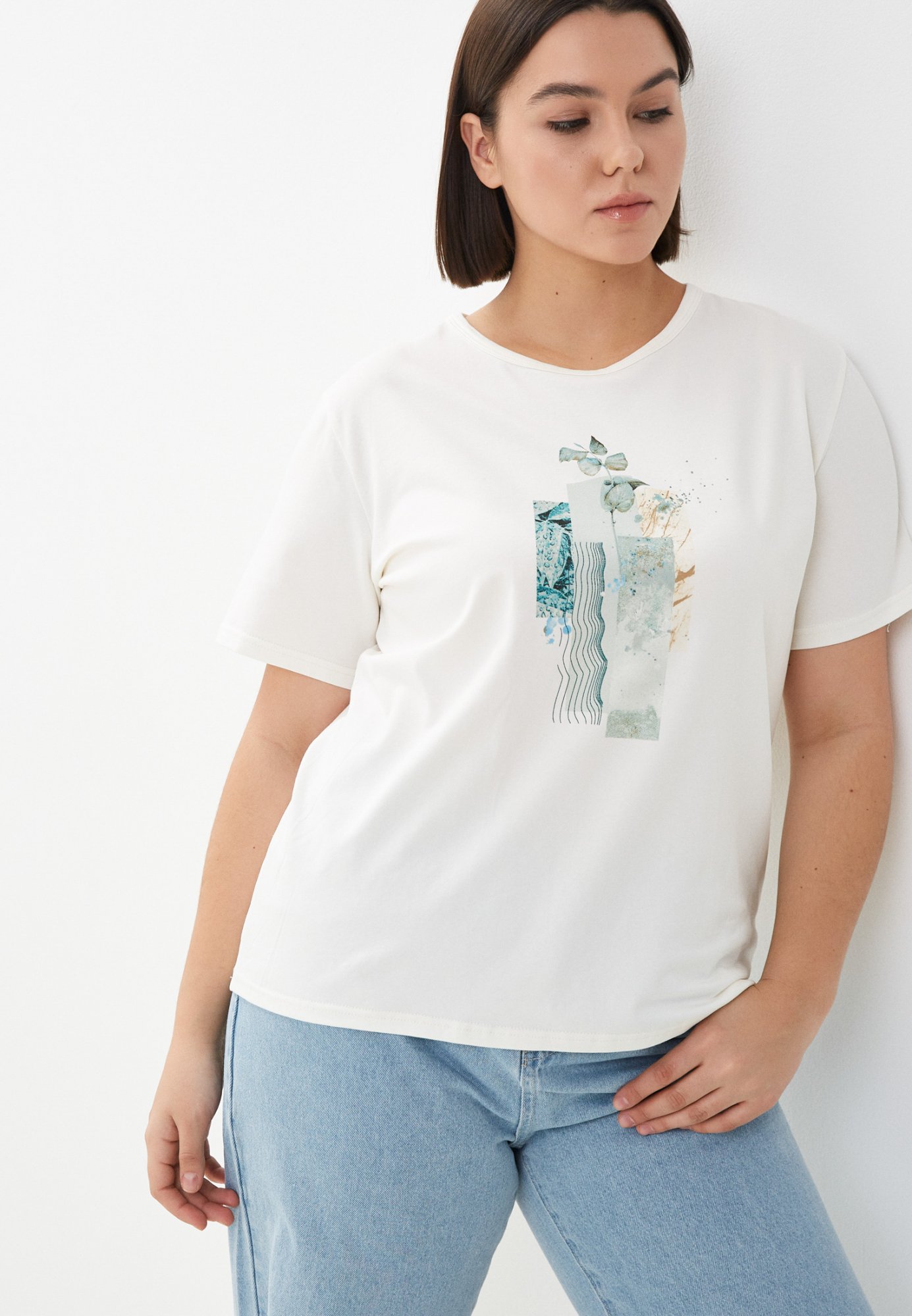 Женская футболка SIZE+ из премиального турецкого трикотажного полотна. Модель прямого кроя с круглым вырезом ворота и коротким рукавом. На полочке изделия красивый незабываемый женственный принт. Женская футболка- это базовая вещь в гардеробе любой современной девушки и женщины, является одной из самых удобных, популярных и незаменимых моделей одежды круглый год, сделает образ изысканным и современным. Наши невероятно удобные футболки отлично сочетаются с шортами, джинсами и различной длины юбками. Свободный крой и элегантная форма рукавов не только придают изделию стильный и модный вид, но и гарантируют его обладательнице комфорт даже в самые жаркие дни. Гладить с изнанки. Стирка при t не более 30С. Деликатный отжим, отбеливание запрещено.