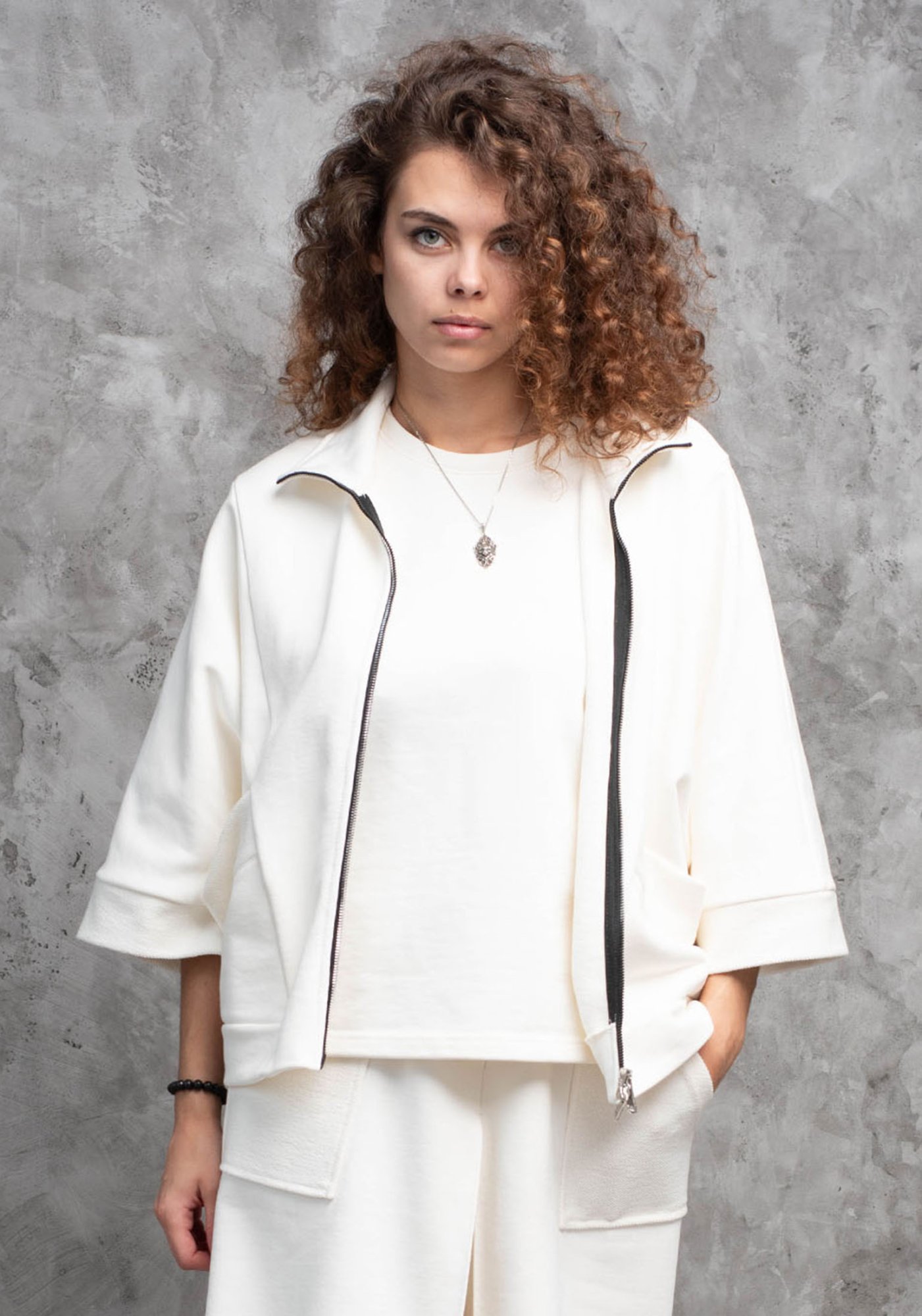 Эффектный кардиган в стиле спорт-шик на молнии, с широкими укороченными рукавами 3/4, выполнен из высококачественного турецкого футера 3-ех нитки без начеса. Элегантный образ создаётся за счёт рельефов на спинке и полочках, а так же шикарных вместительных накладных карманов. На рукавах и карманах отвороты, благодаря которым видно красивую фактуру футера. Кардиган с застёжкой молнией и резинкой в поясе по низу спинки изделия. Наша одежда свободного кроя - идеальное решение на каждый день. Такой крой даёт ощущение комфорта, свободы и раскованности. Наша актуальная модель будет прекрасным подарком на новый год, к 8 марта, день святого Валентина, на день рождение, на день матери. Сделано в России с любовью к Вам! Гладить с изнанки. Стирка при t не более 30С. Деликатный отжим, отбеливание запрещено. При соблюдении наших несложных правил ухода одежда DS будет радовать Вас долгое время!