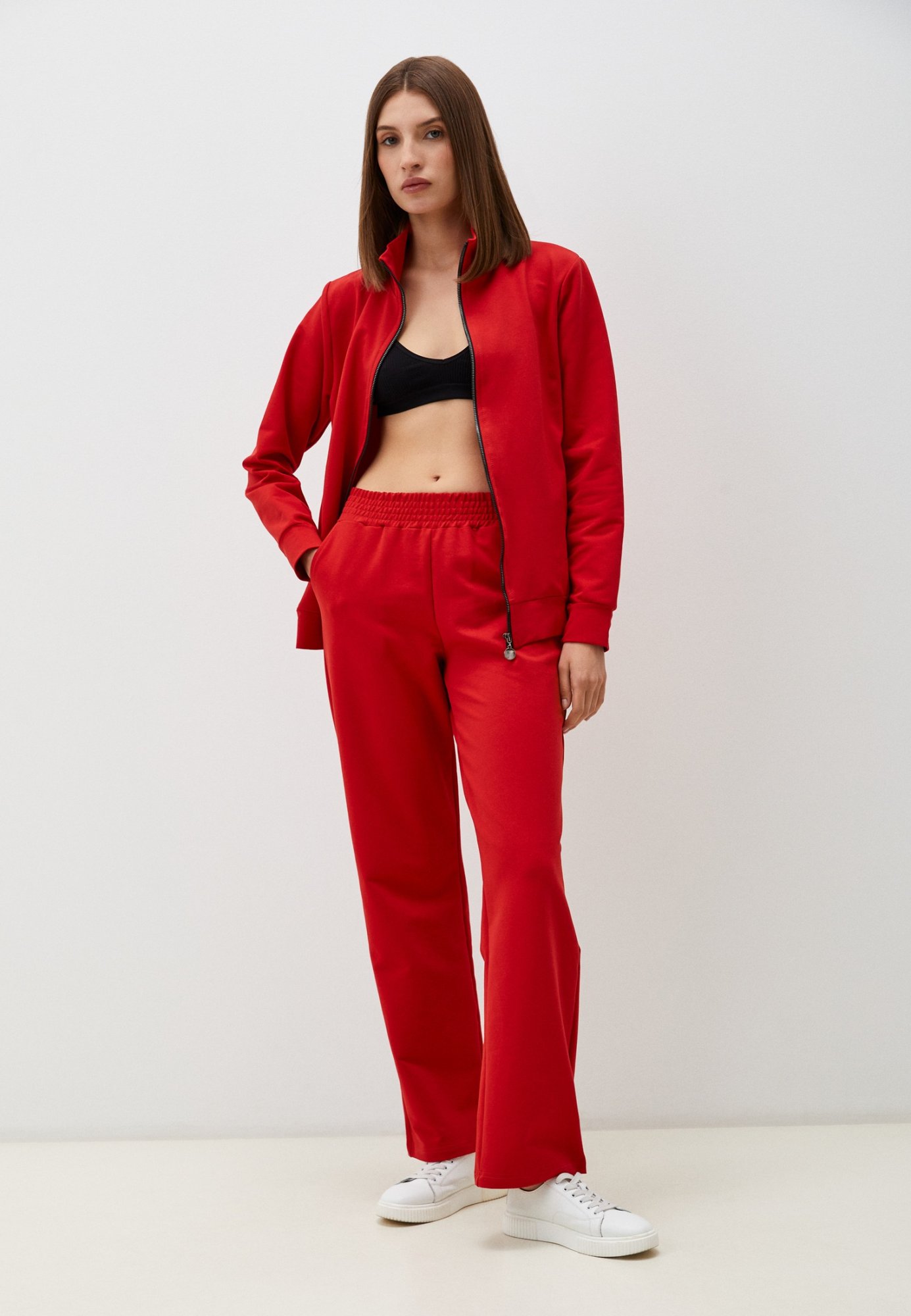 Стильный и комфортный женский спортивный костюм, состоящий из толстовки на молнии (зипки) с воротником стойкой и прямых спортивных брюк, модель выполнена из премиального футера 2-ух нитки без начеса. На поясе брюк удобная и широкая резинка, два вместительных боковых кармана. На полочке толстовки вместительные прорезные карманы с листочками, изделие без подкладки. Трендовый дизайн делает наш костюм стильной частью повседневного женского гардероба. Свободный крой не стесняет Ваших движений. Женский спортивный костюм - это стиль, комфорт и практичность. Отличный вариант для занятий спортом, прогулок, рыбалки, охоты, похода и повседневной носки. Костюм с толстовкой на молнии идеально носить весной, летом и осенью. Наша актуальная модель будет прекрасным подарком на новый год, к 8 марта, день святого Валентина, на день рождение, на день матери. Шикарная модель для шикарной девушки, идеальный презент маме, подруге, дочке и любимой на любой праздник! Сделано в России с любовью к Вам! Гладить с изнанки. Стирка при t не более 30С. Деликатный отжим, отбеливание запрещено.