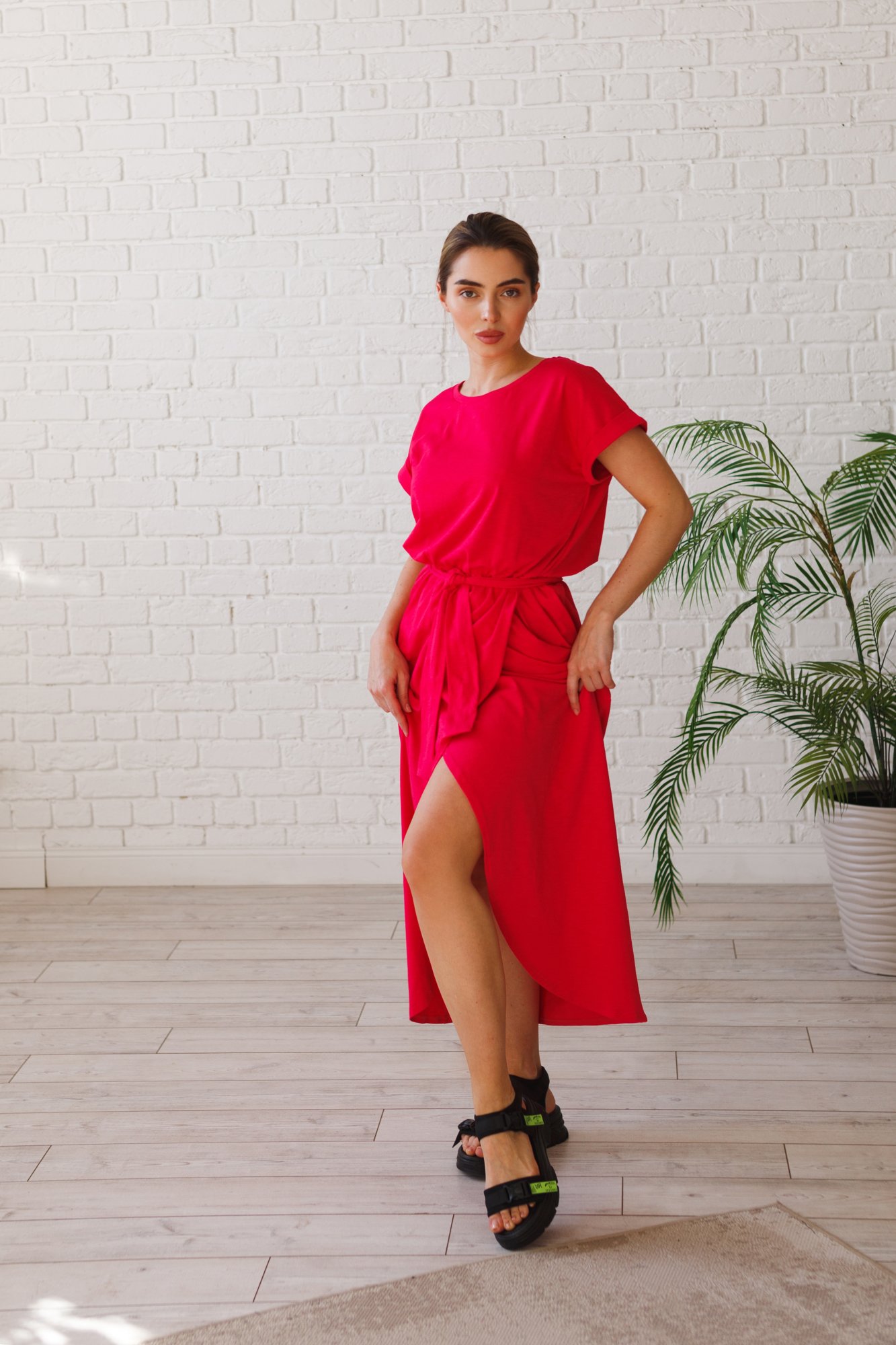 Стильное платье, свободного кроя, выполнено из премиального турецкого трикотажа кулирная гладь Paris Slab. Это модель, которая должна быть в гардеробе каждой девушки. Платье с женственным запахом и поясом. Отличный вариант на каждый день, особенно в жаркий летний день: в офис, на прогулку, на отдых и даже дома. Идеально смотрится на любой фигуре, не сковывает движения и скрывает все недостатки. Гладить с изнанки. Стирка при t не более 30С. Деликатный отжим, отбеливание запрещено.